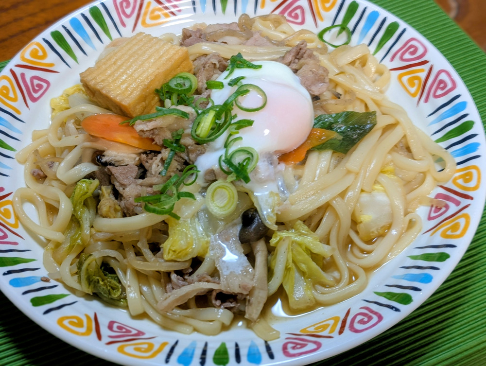 - ④を器に盛りつけ、※温泉卵と※青ねぎをのせて出来上がり。